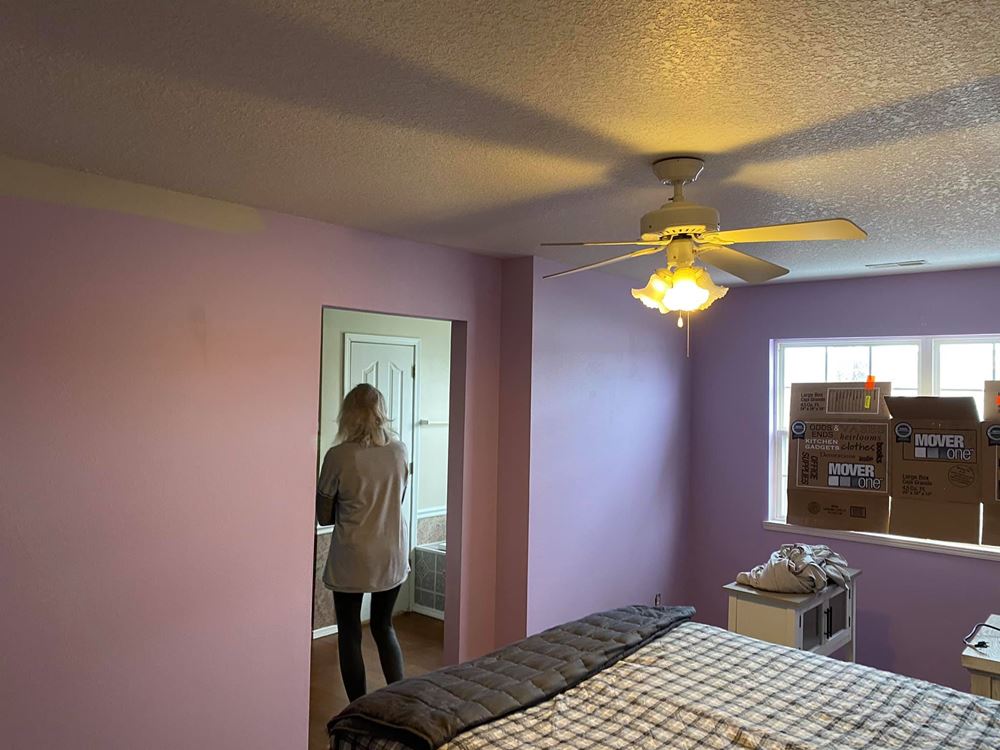 Painted walls, and ceilings in this house in Joplin, Very happy customer! Finish color is S.W Agreeable Gray